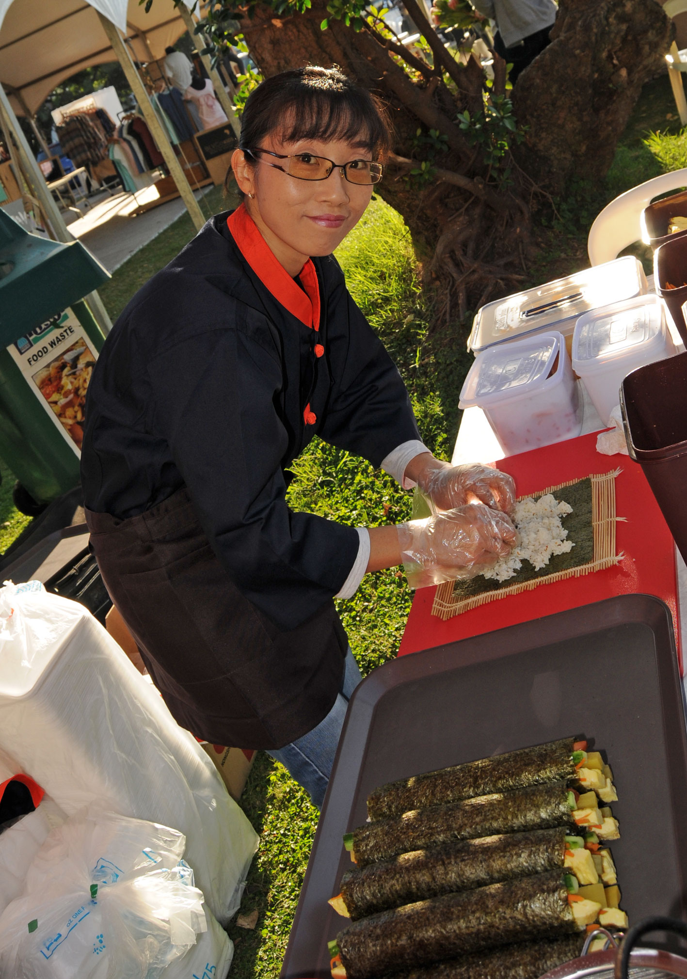 꼬치에 잘 스며든 소스와 그 바베큐 냄새는 사람들을 유혹하는데 전혀 문제가 없었고, 품위를 잊어 버리고 게걸스럽게 닭강정을 먹는 모습, 그 무지막지한 김밥을 한 입에 “원샷” 하는 모집에서 정 넘치는 한국의 모습이 보였습니다. 물론 김치에 벌써 중독되어 대량으로 구매할 수 있냐는 중환자들도 많았고요 하하하…